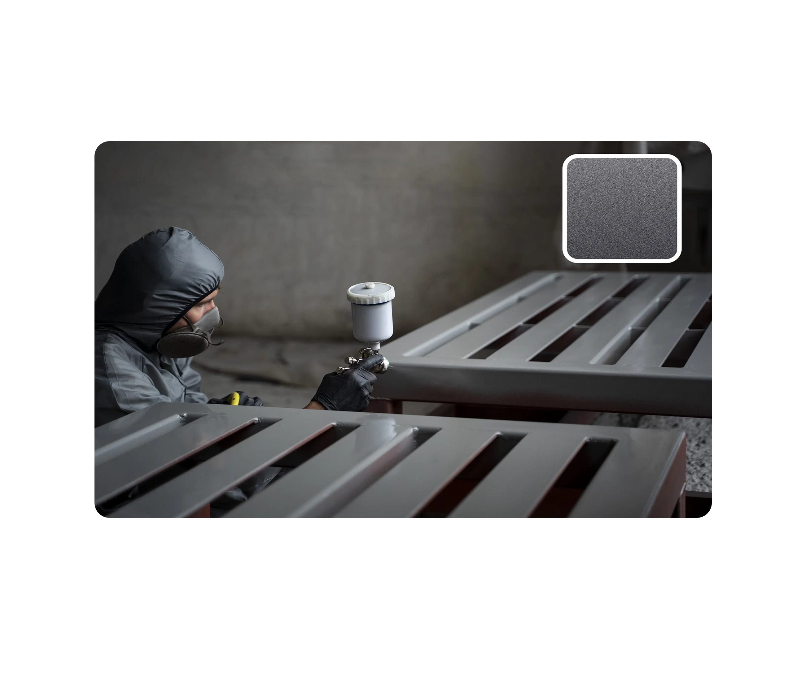 A flawless powder-coated finish begins with meticulous surface preparation. Each component is precisely ground to remove imperfections and create an ideal surface profile. After cleaning and degreasing all contaminants, we apply a zinc-rich primer that forms a strong, corrosion-resistant base layer. This primer not only protects the steel against oxidation but also provides excellent intercoat adhesion, ensuring the top layer bonds perfectly to the substrate.