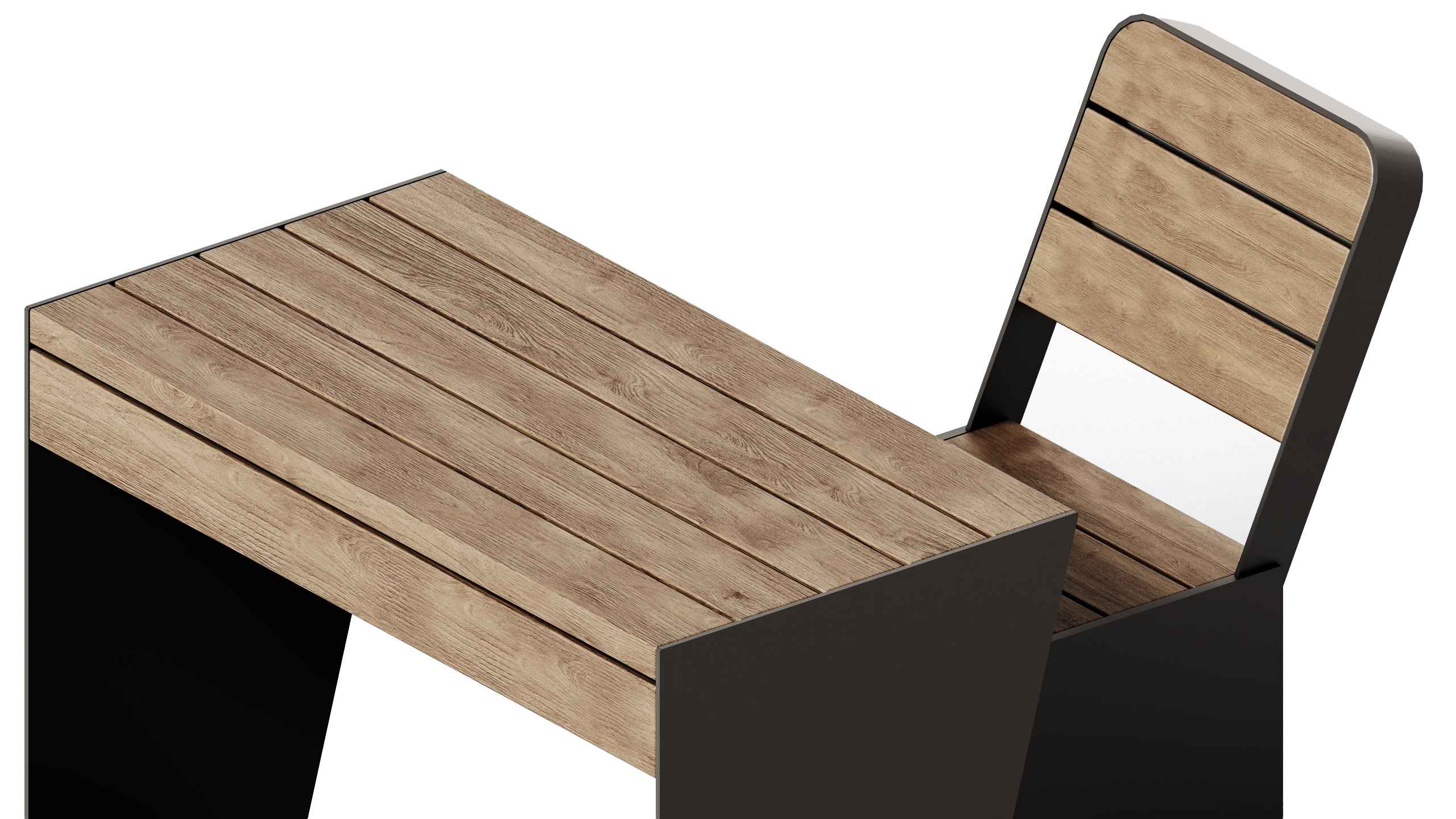 The Aurea Chair features premium finish combinations that merge rich wood textures with strong, enduring metal accents. Each option is carefully crafted to accentuate the chair's sleek silhouette and modern aesthetic, allowing it to complement a variety of outdoor settings and coordinate smoothly with other pieces in the Aurea Series.